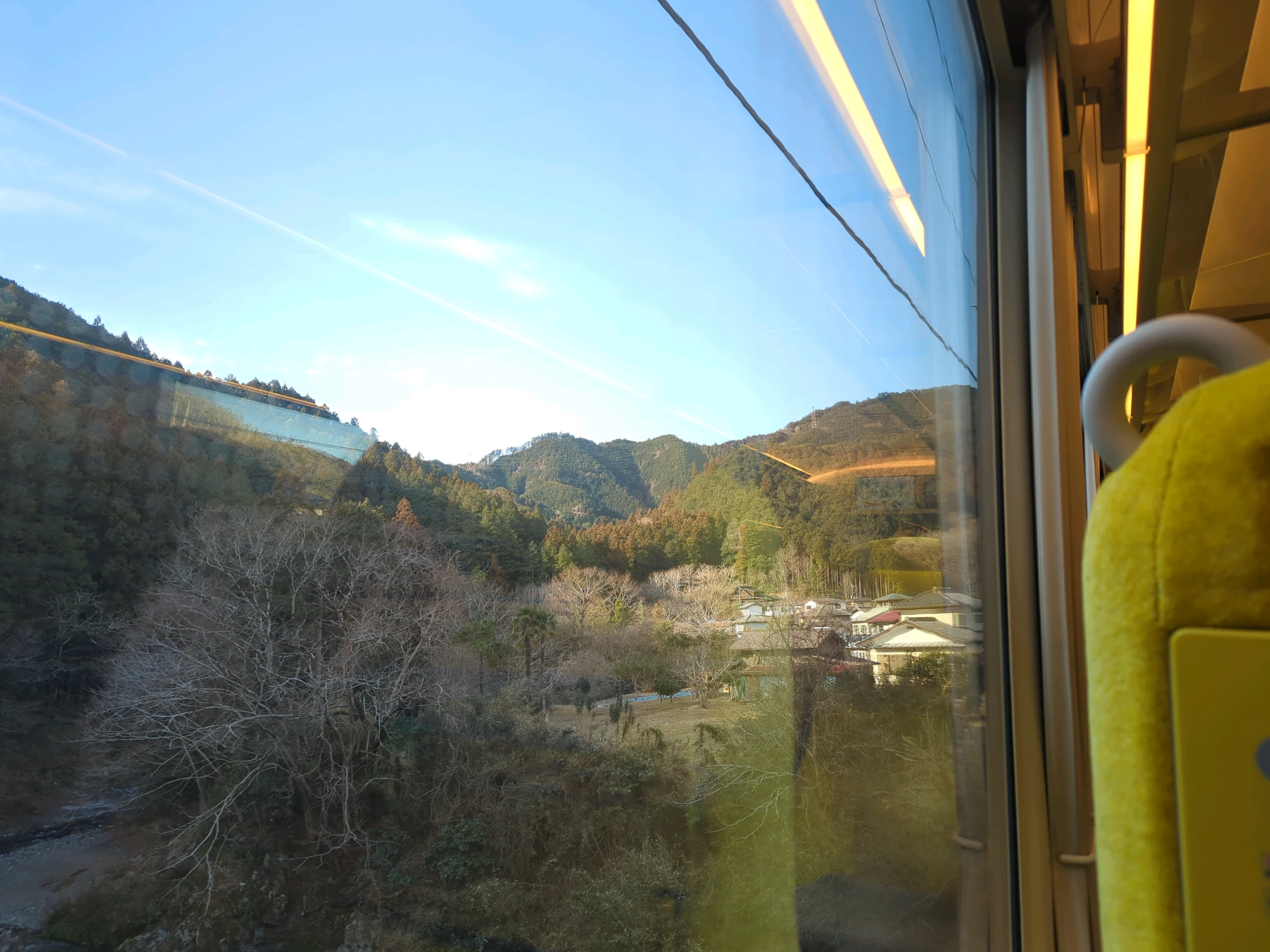 窓には八幡浜のみかん畑が見えてきたところで、枕を所定位置に戻し、コードを着て、荷物も整理して、いつでも降りれる状態へ。