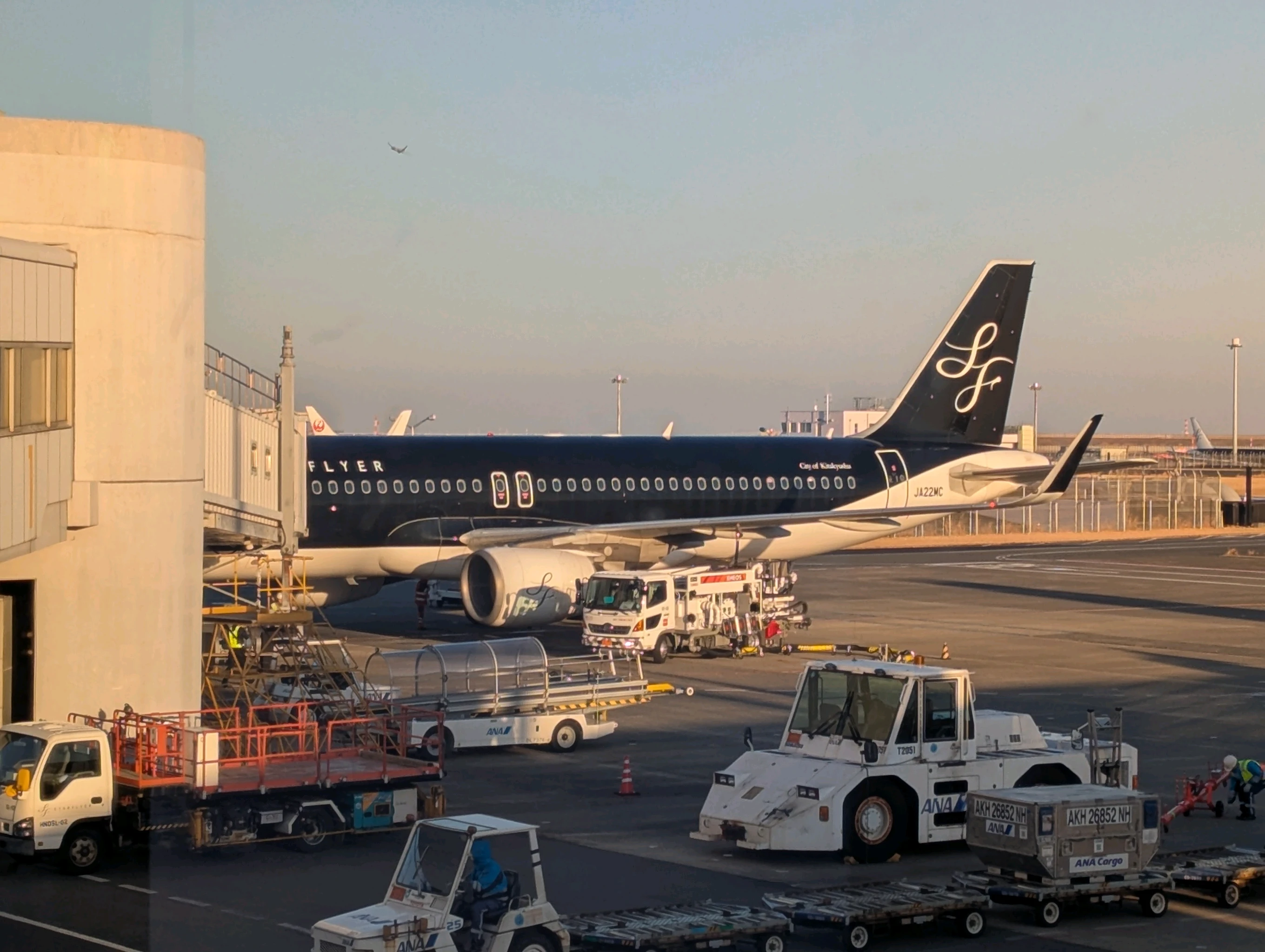 飛行機は真っ黒な機体でお馴染みのSTAR FLYERです。