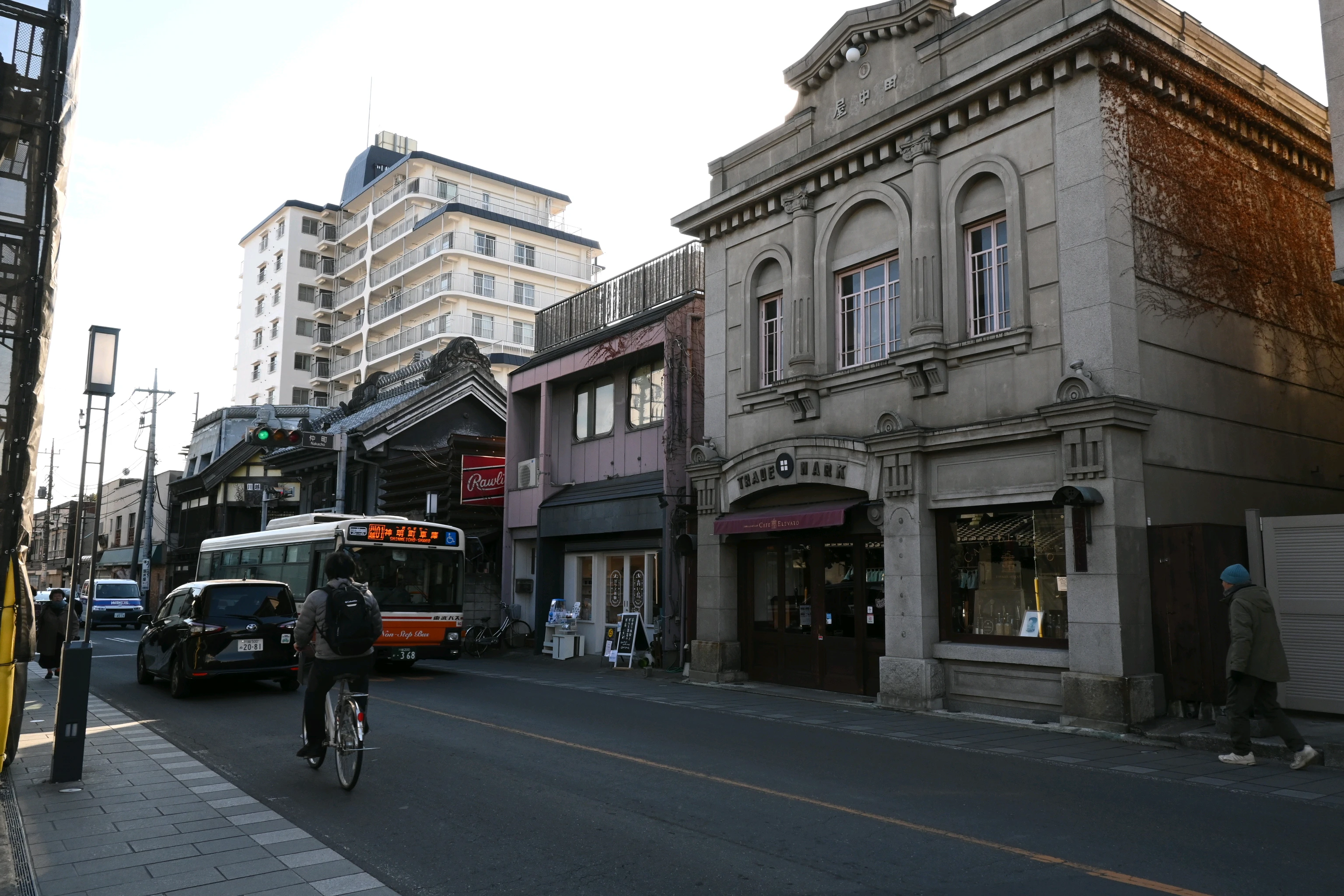 「蔵のまち」まではバスで来ましたが、この手の街並みを観光地としているところって「幹線道路を別に作っておとなしめにさせている」のが一般的なので、ここもそうかと思ってましたが、ここの場合は、まあ車通りが多いというか、乗ってきた路線とは違うバスも多く通るほどの幹線道路なのですね。これはこれで江戸っ子らしく騒がしい気がして悪くないですね。
