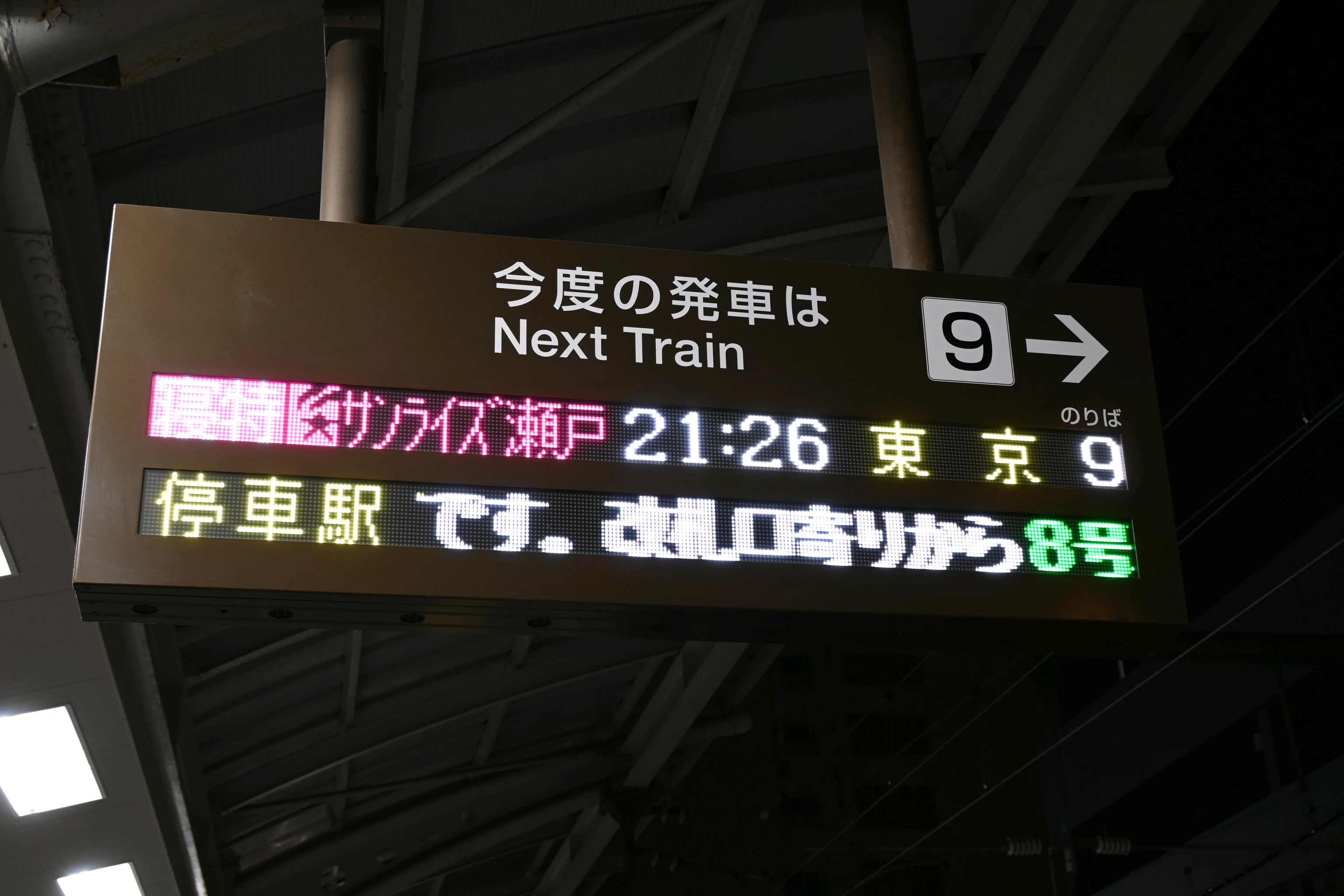 正直、どっち乗ってても「サンライズ瀬戸号」には乗り換えができますが、今回は最初から「サンライズ瀬戸号」に乗ってみたかったので、ここはあえて終点の高松へ向かいました。