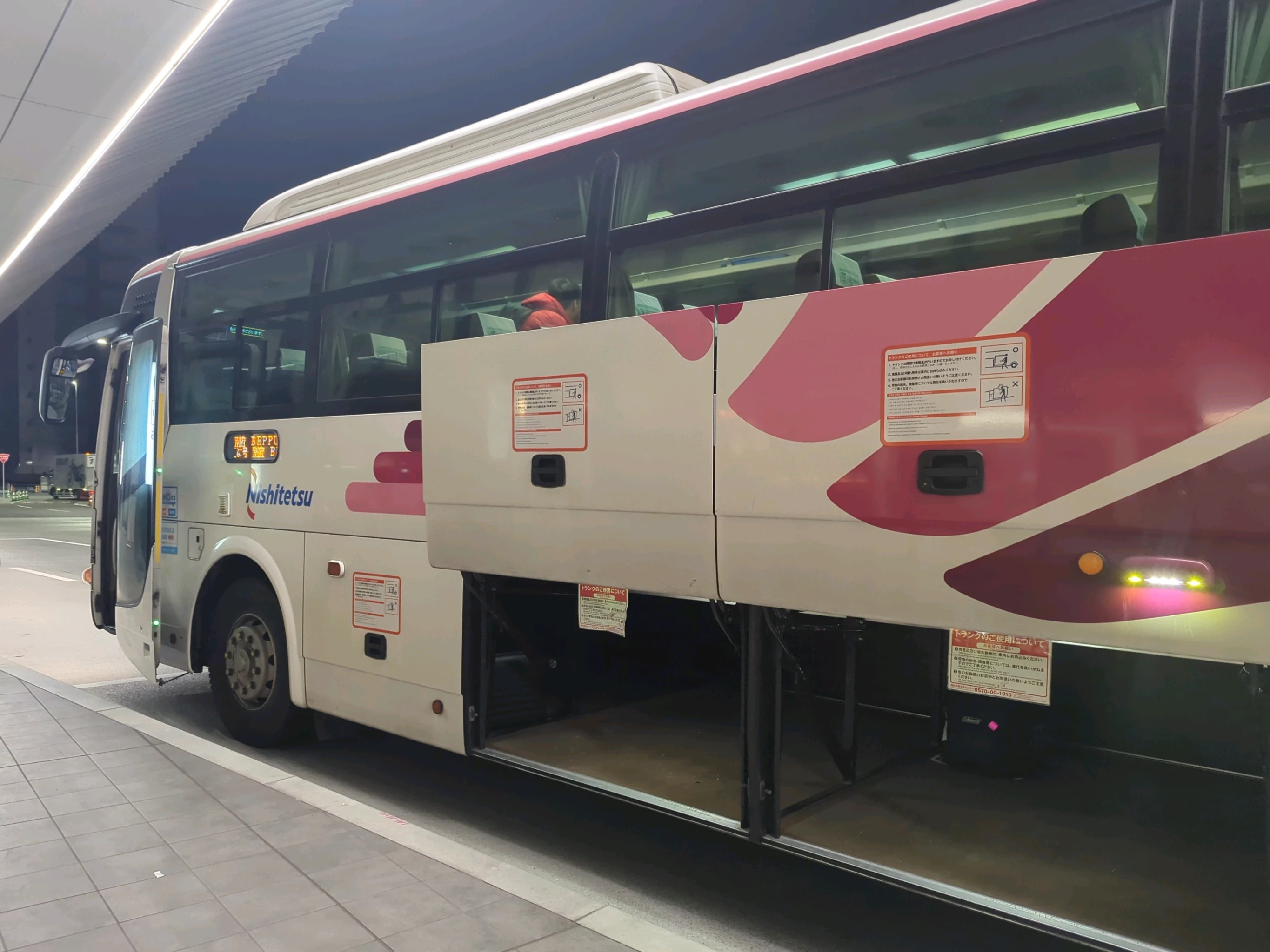 福岡空港国際線ターミナルからは、最後の乗り物である高速バス「とよのくに号」に。